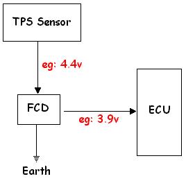 The theory is simple. All FCDs alter or bodge the voltage signal from the TPS. The resistor method drains a portion of the signal away down to earth. i.e. part of the signal produced by the TPS will be taken away. This is done through a potential divider network. The single fixed resistor is in place to ensure there is always part of the signal to be drained down to earth and so that you cannot short out the signal being sent from the TPS and potentially damage the TPS or ECU. The variable resistor is used to set an alterable point at which you want fuel cut to happen.