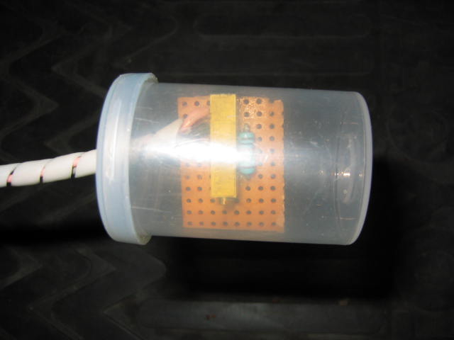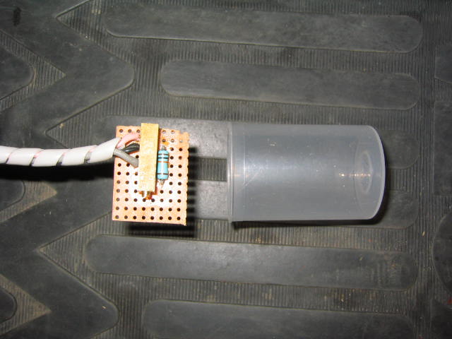 Take your veroboard and construct the circuit as shown below, soldering the components to the veroboard - looks a bit messy but I was "experimenting!"