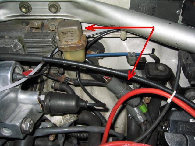 The dropping resistor for the fuel pump can now be removed to free up a little room in the engine bay. This is also a handy place to mount the Water Injection relay! The resistor is located on the right hand side of the engine bay next to the diagnostic connector.