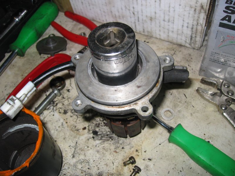 Whilst holding the coil, under the 10mm nut holding the impellor on, and remove |