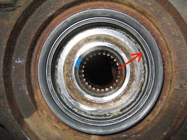 | Picture of the wheel bearing just waiting to catch all the crap! Crap attracting area indicated... | |