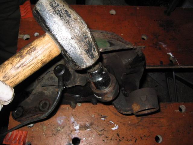 | ...and using a screwdriver inserted through the bush, hammer this through and out of the other side of the hub... | |
