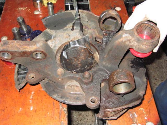| Hub being separated from arms and legs, (note this picture shows the bushes already replaced) | |