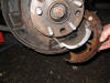 | Next, simply pull hub free! (in true Haynes manual style!) Watch out for the CV boot, and don't pull the drive shaft out from the diff too far otherwise you'll be in for another job...You may need to separate the driveshaft from the hub, (it might be stuck), if so refit the hub nut and hit the end of the driveshaft with a rubber mallet. Use the nut and you won't damage the thread | |
