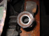 | View looking at back of hub. Notice there are 3 bushes to be replaced. It is a good idea to spray the nuts with penetrating oil and leave to soak | |