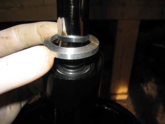 | Stick the "domed" spacer on top of the shock...(applicable to the 165 only) | |