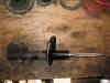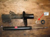 | Once the nut is removed the shock simply slides out from its housing. Have a bucket handy for all the old oil | |