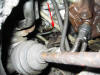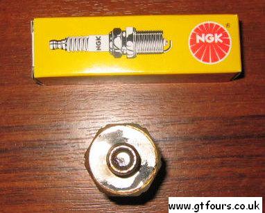 | Knock sensor location, remove with a deep reach 27mm socket | The sensor can be accessed by taking off the drivers wheel and peering in through the arch | Close up of knock sensor, torque to: 165/185 - 44Nm |