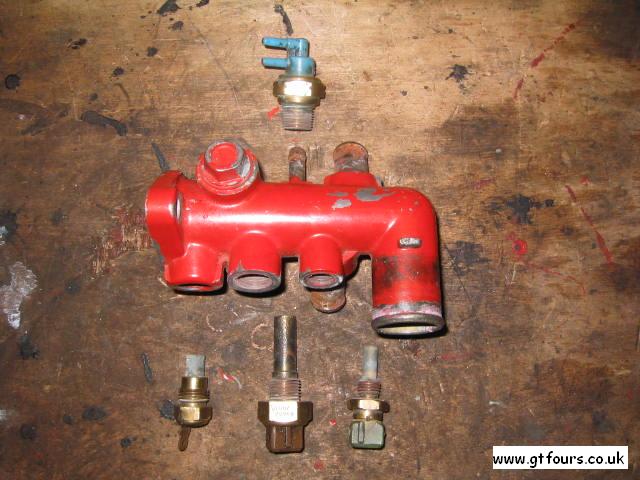 | End view | ATS racing/GM knock sensor. Apparently this is a replacement for the stock knock sensor... | ATS racing/GM knock sensor. I wouldn't fit one of these to my car since KS are "tuned" to a specific engine | Sensors within the water elbow |