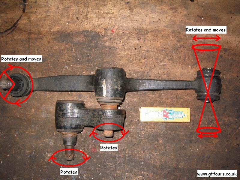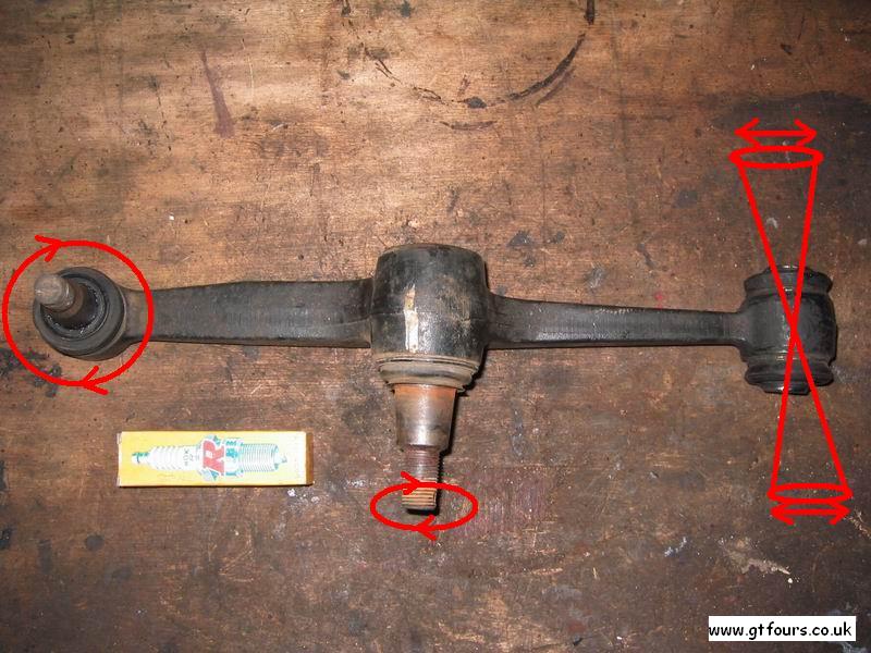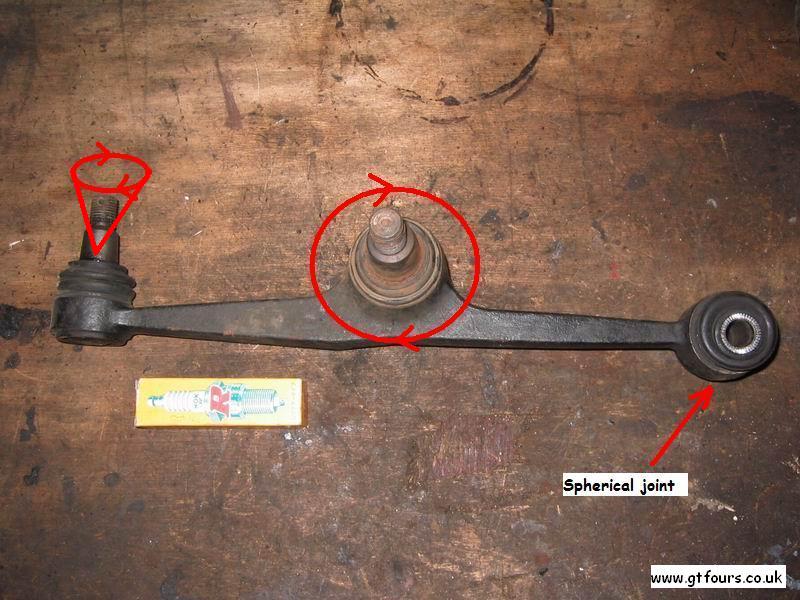 One end of the arm attaches to the front sub frame. This joint is similar in nature to the rear spherical hub joints |