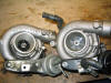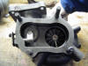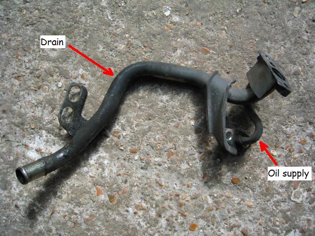 | Oil feed and gravity return from the turbo. Looking closely you can see the shaft bearing/bearing housing |