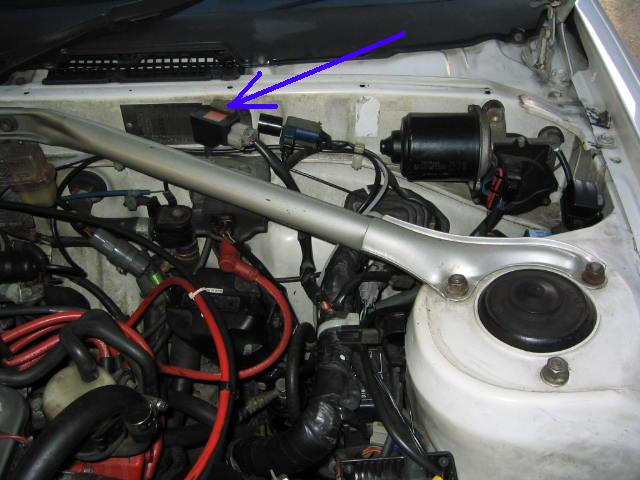 Just right of the middle of the engine bay on the firewall is the Turbo Pressure Sensor, (TPS). Manifold pressure is fed up from a hose attached to the bottom right of the manifold up to the TPS sensor. As the manifold pressure changes this change is felt by the TPS. The TPS converts the manifold pressure into a voltage signal which is sent down to the ECU.
