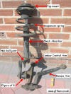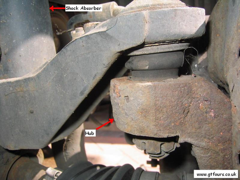 would ordinarily be bolted to the bottom of the hub, and the movement of the lower arms.