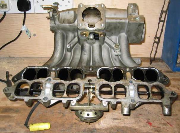 At the rear of the manifold are some pipes and VSVs, these serve to twist a bar that passes through the intake manifold, onto which some butterfly valves are located. Below 4300rpm the bar is twisted so that one runner to each cylinder is blocked by a butterfly valve, at 4300rpm the ECU sends a signal to the TVIS VSV and says "open up", the bar twists and the butterfly valve unblocks the runner.